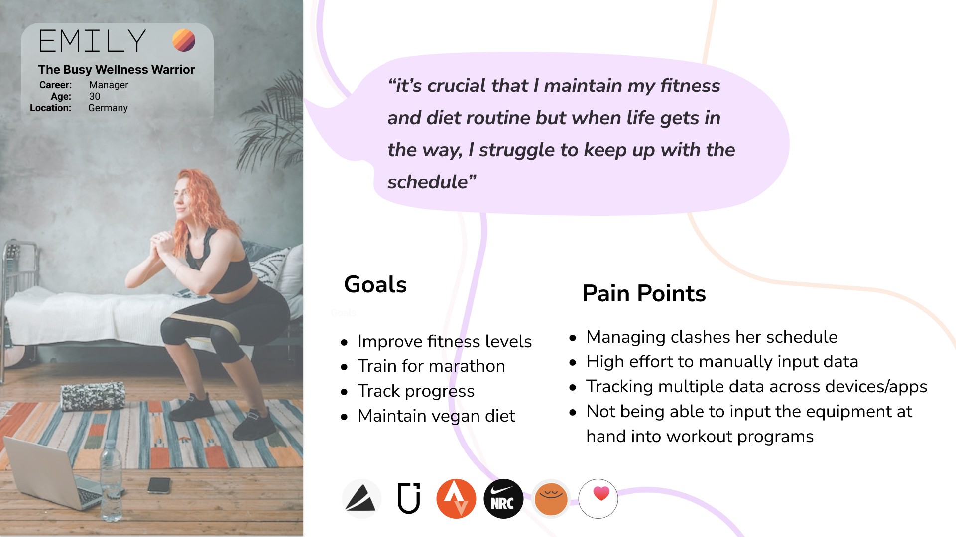 Conducted competitor analysis across fitness, mental wellness, and productivity apps.