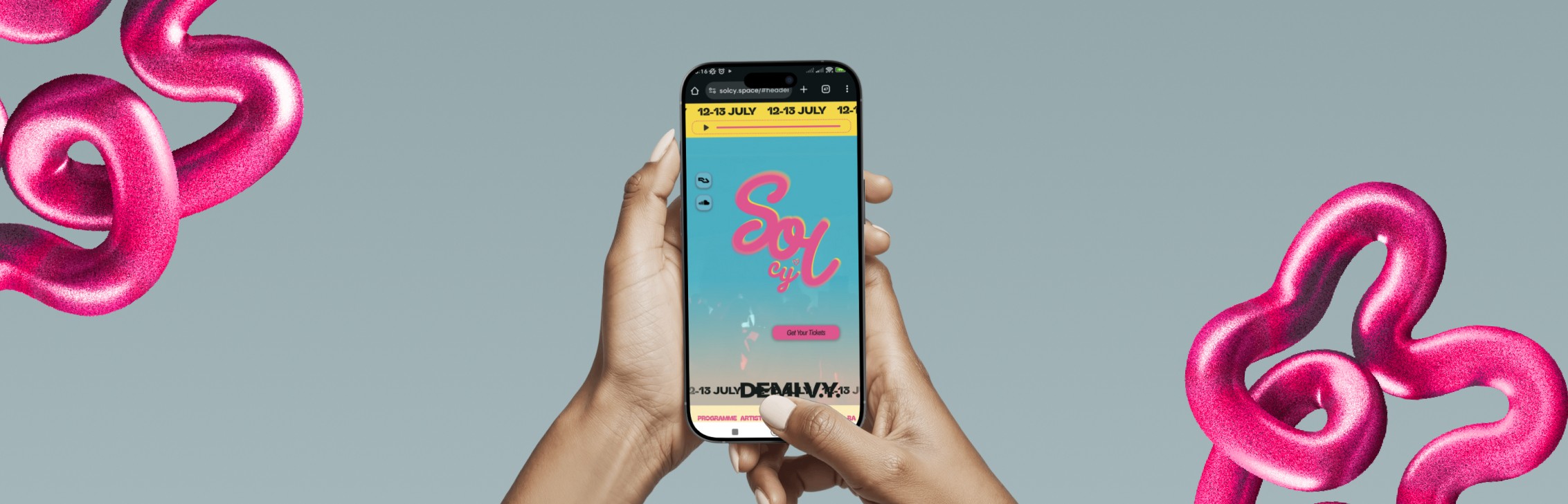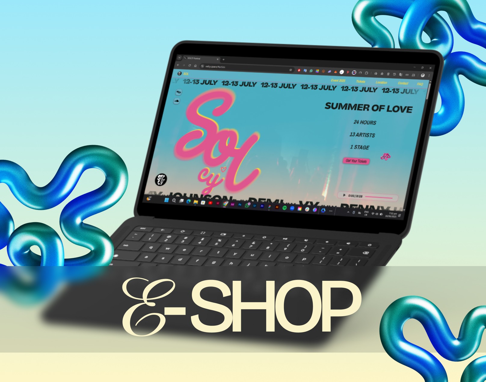 Developed a responsive layout that performs across devices: hero carousels, countdown sections (“24 HRS of Music – 13 Artists – 1 Stage”), rich image backdrops, and intuitive navigation (Artists → Programme → Tickets → FAQ).